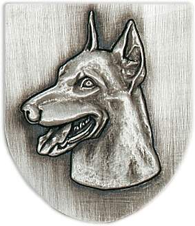 Zinn-Emblem Wappenform Hunde "Dobermann"