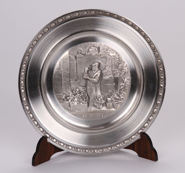 Zinnteller Spitzweg - Der Kaktusfreund Durchmesser ca. 12 cm Hersteller: Dörr Mit Öse zum Aufhängen