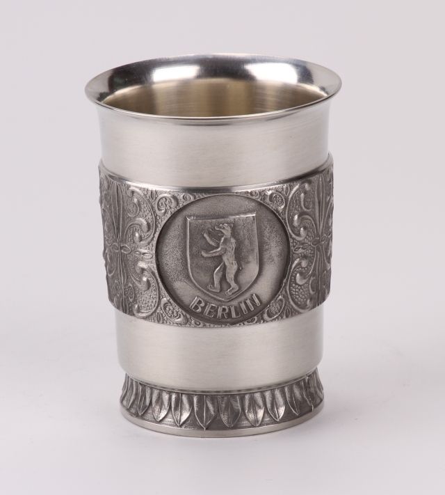 Zinnbecher Berlin Herstellerstempel TMZ (Ehemaliger Produzent nicht mehr zu ermitteln) Höhe ca. 9,5cm Lieferung in Geschenkverpackung Achtung Fremdware keine Nachlieferung möglich. Bitte vorher abklären ob Menge Lieferbar ist!