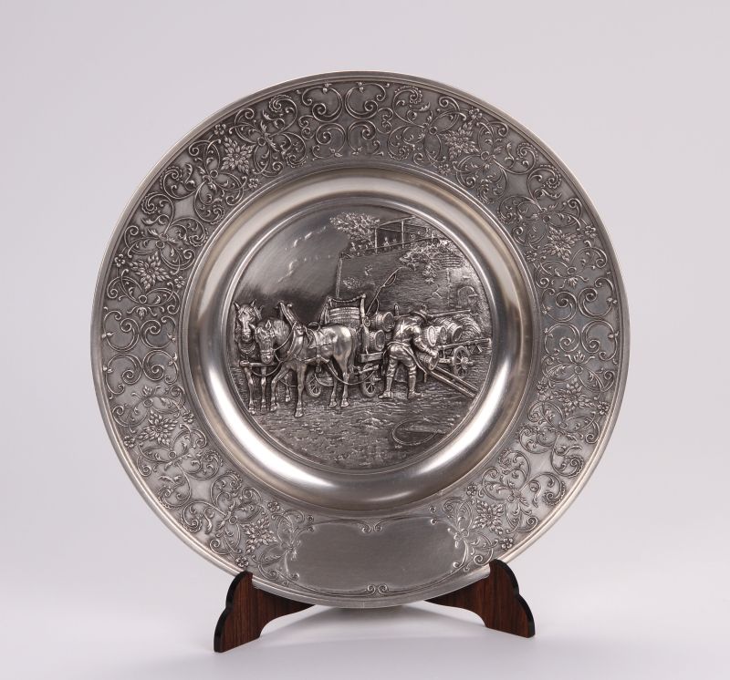 !!! Einzelstück !!! Zinnteller Bierwagen Durchmesser ca. 21cm Hersteller: Artina/SKS Mit Öse zum Aufhängen